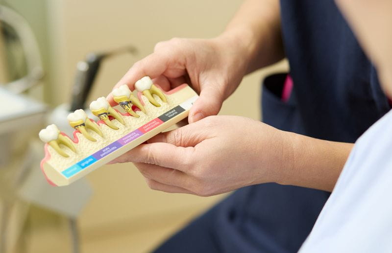 初期の自覚症状がほとんどなく、気づかないうちに進行してしまうことが大きな特徴です。日本では、成人の半数以上が歯周ポケットなどの歯周病所見を持つといわれ、軽度の歯肉炎や予備軍まで含めると、7~8割の方が何らかの歯周病リスクを抱えているといわれています。特に40代以降で発症率が高く、注意が必要な生活習慣病の一つです。進行すると歯が揺れ、最終的には抜歯が必要になることもあります。そのため、毎日のセルフケアに加えて、歯科医院での専門的なケアや定期的な検査を受けることで、早期に変化を捉え、対応することが大切です。