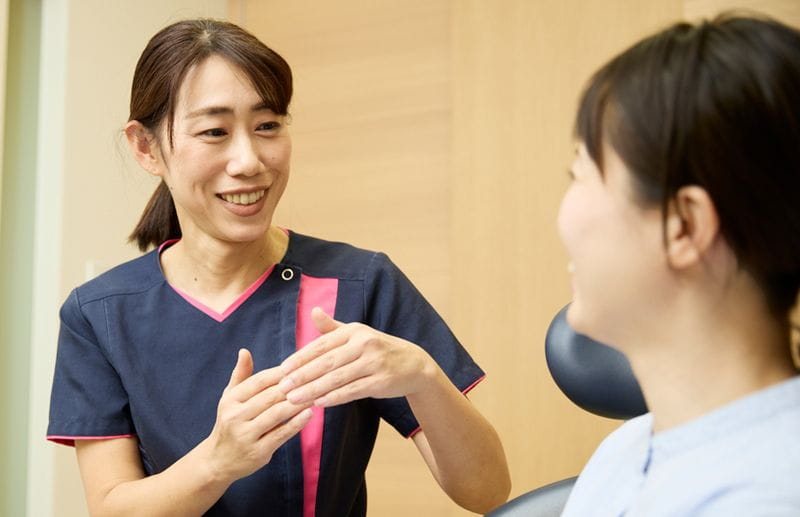 そのためには、ご家庭でのセルフケアと、歯科医院でのプロフェッショナルケアの両立が欠かせません。当院では担当歯科衛生士制を採用し、毎回同じ歯科衛生士が継続してお口の状態を経過観察をしています。その中でむし歯や歯周病のリスク、生活習慣、セルフケアの傾向を丁寧に分析し、患者さま一人ひとりに適した、歯ブラシ、歯磨剤の選定など予防プログラムをご提案しています。