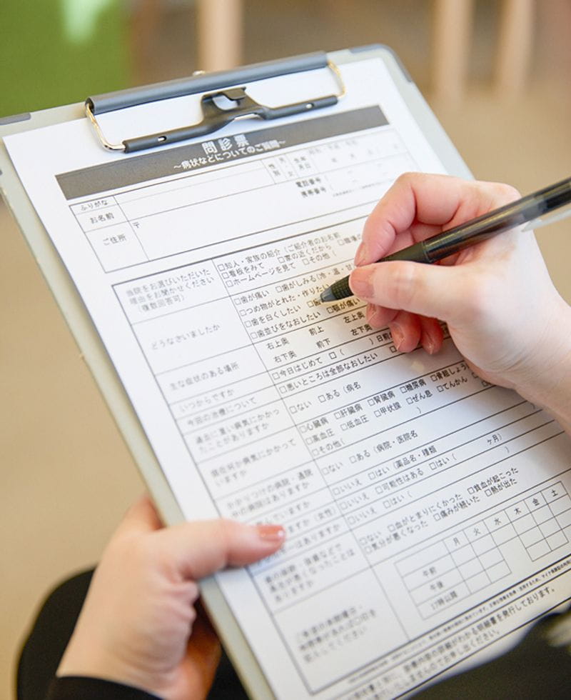 初診の際は問診票などへの記入時間を考慮し、予約時間の10分前にご来院ください。